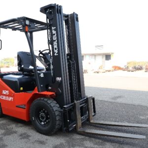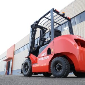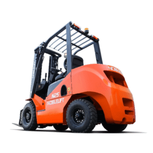Autoelevadores a combustión Diesel, de marca NOBLELIFT. Excelente visión gracias a su diseño amplio de mástil. Cabina en suspensión, con reducción de la vibración y amplio espacio operativo.