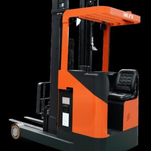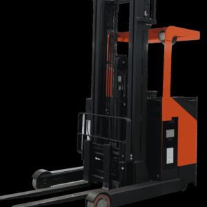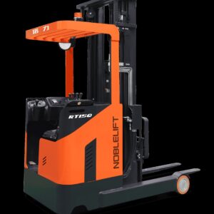 Apilador REACH de la marca Noblelift, de elevación electrohidráulica, traslación eléctrica y contrapesado. Ideal para pallet cerrados, y para mover cargas pesadas a grandes alturas. Con operario sentado, y cabina de protección. Tiene un andar suave y elevación controlada. Las torres triples llegan hasta 6.000mm